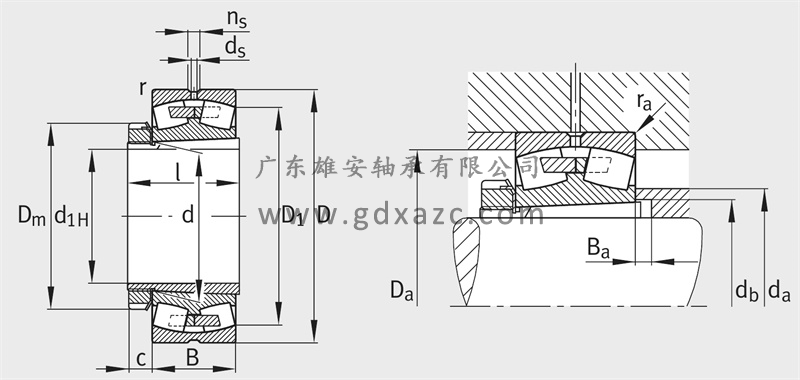 基本参数 型号 239/800-B-K-MB+H39/800 系列 调心滚子轴承(带紧定套)