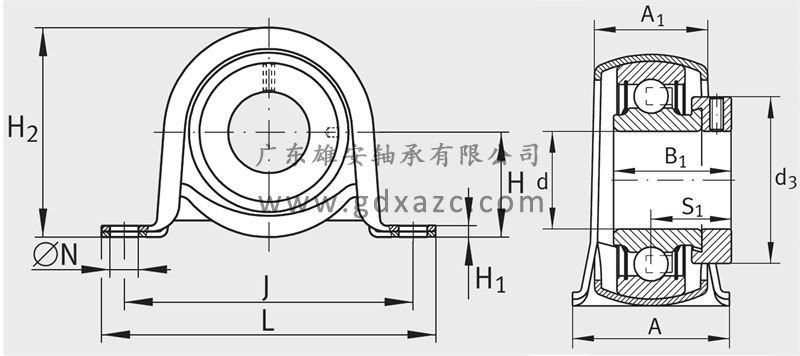 基本参数 型号 PB12 系列 立式轴承座单元(冲压钢轴承座)