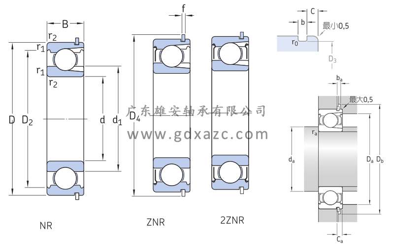 基本参数 型号 307-2ZNR 系列 带装球缺口和止动环的单列深沟球轴承