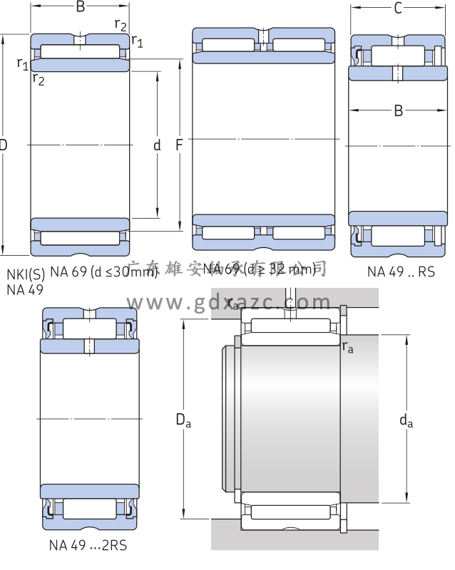 基本参数 型号 NA4908 系列 带机削套圈、挡边和内圈的滚针轴承