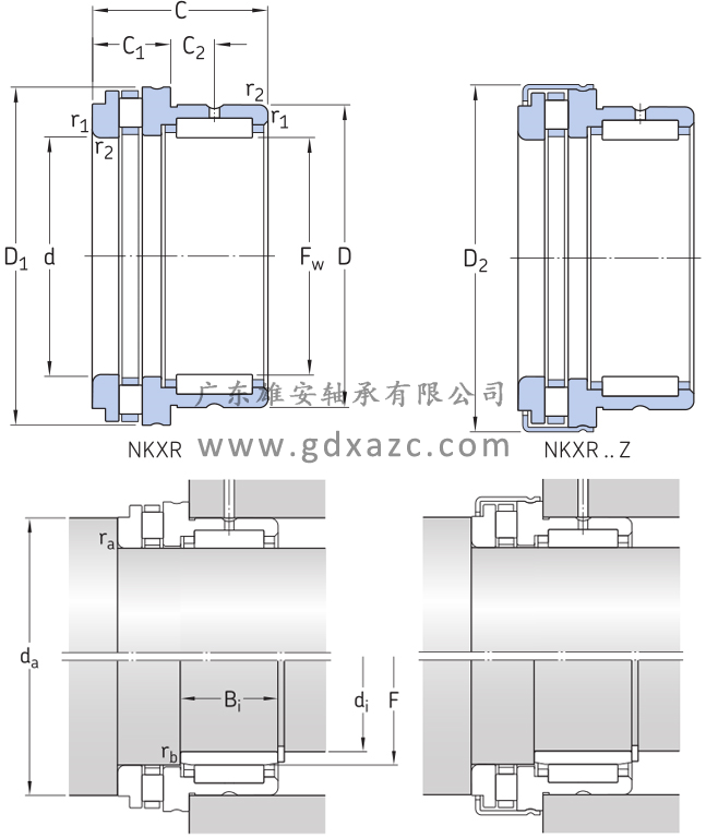 基本参数 型号 NKXR35Z 系列 滚针/圆柱滚子推力轴承