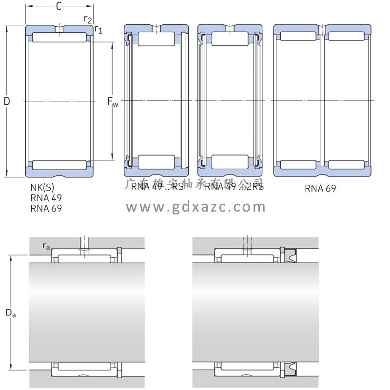 基本参数 型号 RNA4910 系列 带机削套圈、挡边、不带内圈的滚针轴承